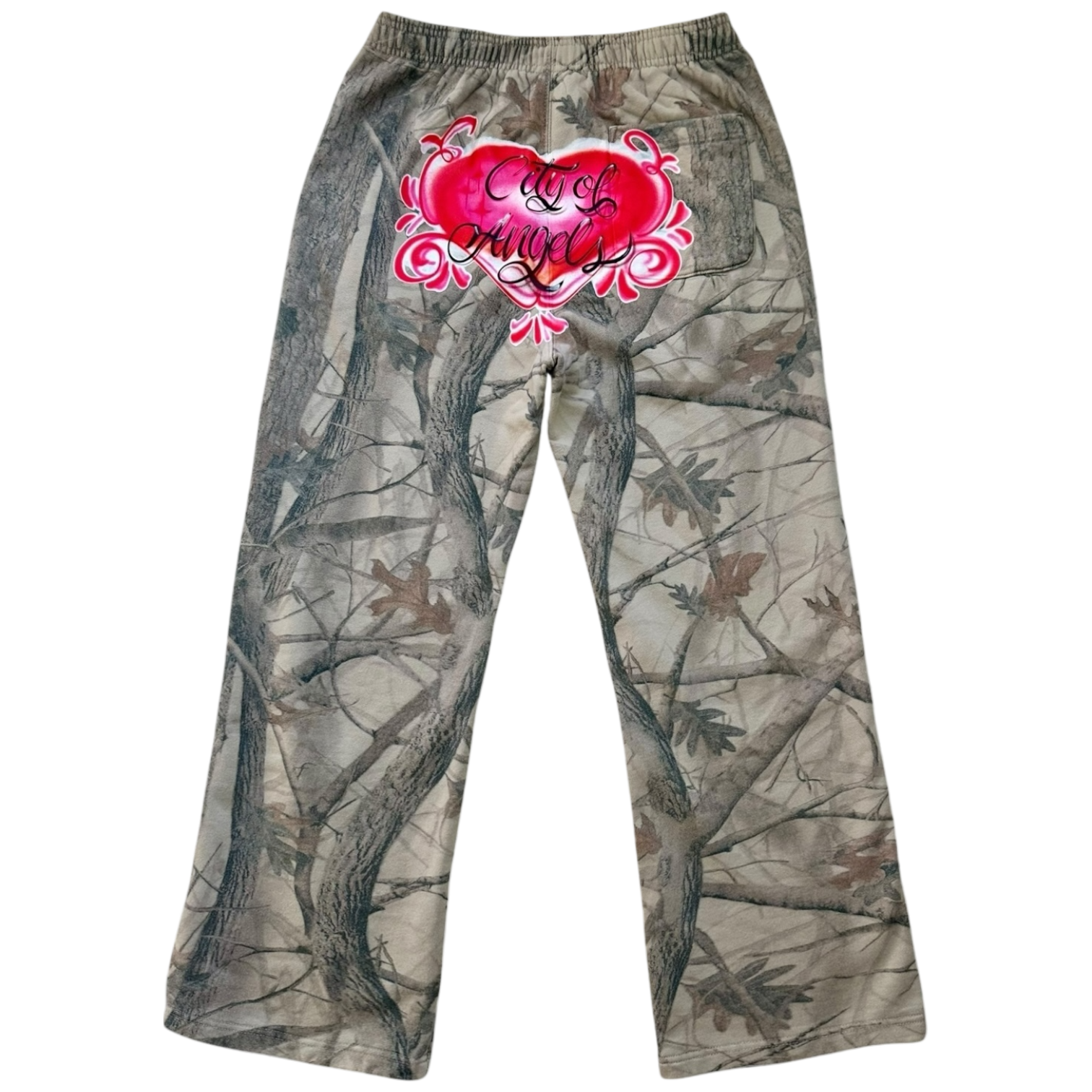 The Hearted Camo Sweatpants feature the “City of Angels” Heart artwork on the back of the pant along with 4 pockets and a straight leg cut. Each piece is unique, please allow slight color variation. Recommended to order full set together to guarantee color match.